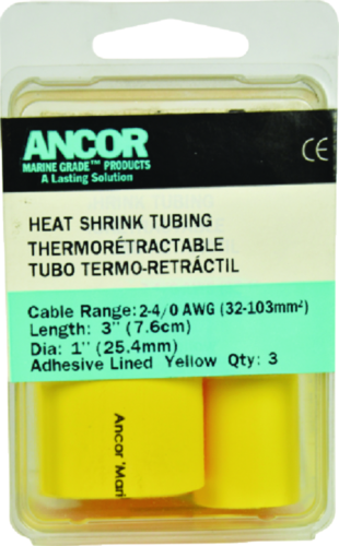 | 639-306903 | Ancor 306903 Marine Grade® Adhesive Lined Heat Shrink Tubing, 3/4" x 3", Yellow, 3/Pk |