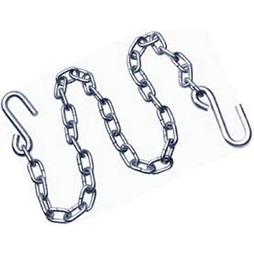 Welded, zinc-plated, solid steel chain links with 2 S-hook safety clips. Safety chains can prevent runaway trailer in case of hitch / coupler failure