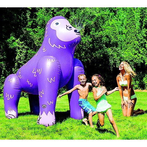 Sure, the kids could run through the rusty ol' sprinkler you keep in your shed (think: "ouch! dad my eyes are burning!"). But if you want cool points with the fam you've got to THINK BIGGER man! Take your summer game to the next level with our Ginormous 7-foot tall Ape Yard Sprinkler. It's the missing piece to that epic birthday, pool party, BBQ, or family reunion you've been planning (or dreading).We made it super-simple to use, too. Just inflate it, and connect a standard garden hose. Turn on the water and voila!…water sprays out of the ape's mouth and onto a bunch of happy people who were about to leave for "a prior engagement". The inflatable design also means that it's lightweight, easy to move, and deflates for compact storage in the off-season. Party saved! over 7 feet tall!sprays water out of it's mouthconnects to any standard garden hosejust inflate it, then turn the water onair valve features a wide-mouth cap for fast deflationanchors to the ground (includes anchor kit)great for birthday parties, heat waves, poolside entertainment, 4th of July and more!easy to wipe down, inflate/deflate, and store
