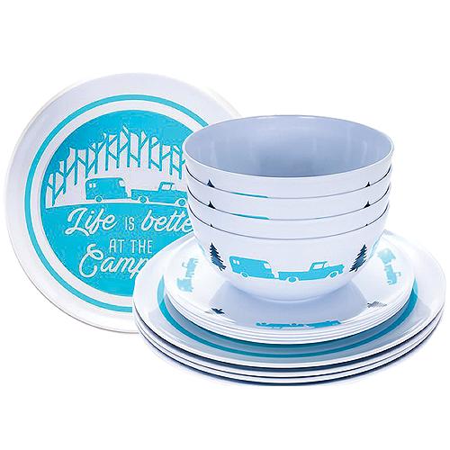 | 17-53294 | Camco 53294 Melamine Dishware, Blue Tree & Truck Pattern, 12 pc. Set |