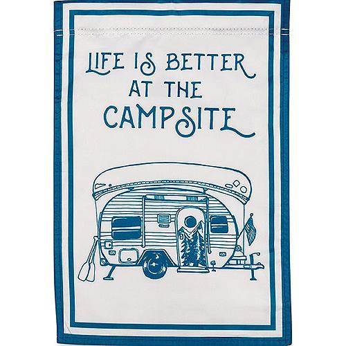Life is Better at the Campsite Decorative Garden Flag with a unique RV camper design, ideal for RV enthusiasts. Constructed of durable, weatherproof nylon that is great in all seasons.