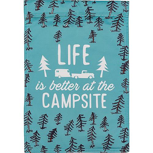 Life is Better at the Campsite Decorative Garden Flag with a unique RV camper design, ideal for RV enthusiasts. Constructed of durable, weatherproof nylon that is great in all seasons.