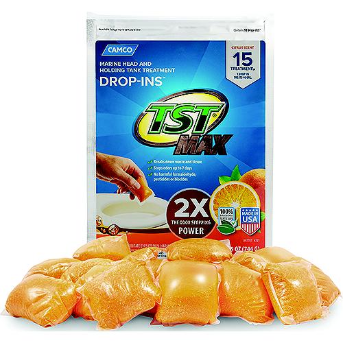 Help control unwanted odors and break down waste and tissue in your boat's holding tank. The Drop-INs are marine approved and 100% biodegradable. They do not contain formaldehyde and are safe for all septic tanks. One treats up to a 40-gallon tank. Includes (15) citrus-scented Drop-INs.