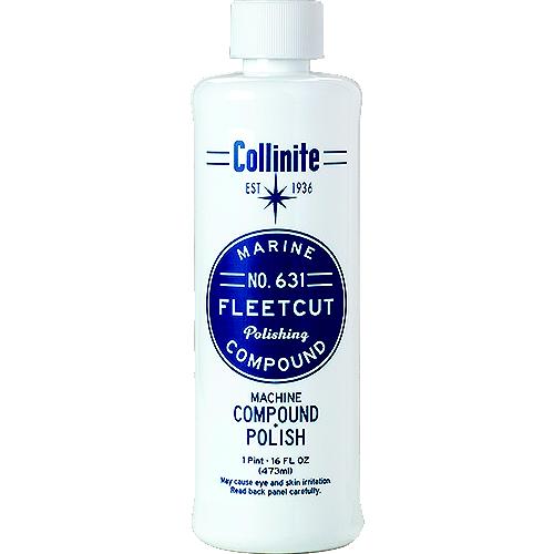 A compound + polish in one product, No. 631 cuts quickly to eliminate moderate to heavy defects; oxidation, minor scratches, swirls, stains, and compound haze from fiberglass and gel coat. Fleetcut's engineered nano abrasives and nourishing oils leave behind a mirror finish while facilitating the easy application of Collinite's protective wax coatings; improving wax bond, spread and durability. Exclusively for marine detailing. Not designed for use on anodized aluminum, clear coat paint, plastic, or glass. Average Spread/Coverage: 250-500 sq feet.