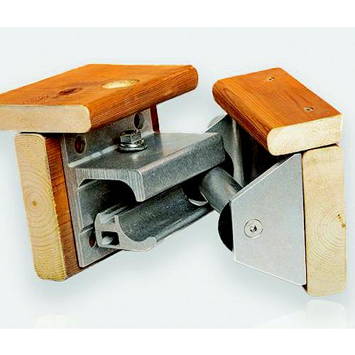 Mounts to wood or aluminum and utlizes a standard mounting pattern for 1/2" carriage bolts. Self-contained: never drop or lose a pin againSelf-supporting: easy for dock owners to set-up & take-down their own docksSelf-aligning: functions from above, one 3/4" socket, secures in secondsPatented bushing system means no metal-on-metal squeaking - virtually silentWide range of motion allows for fluctuating water levels and wave action with less noiseEasy to install & align, works with existing corner brackets, backing plates and hardwareSafer for dock builders & owners: carries the heavy loads & no fingers between heavy docks