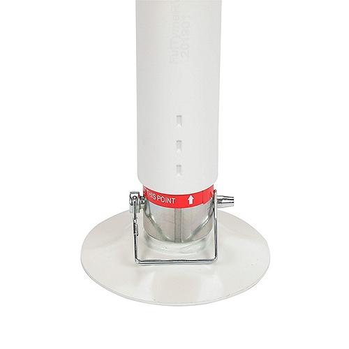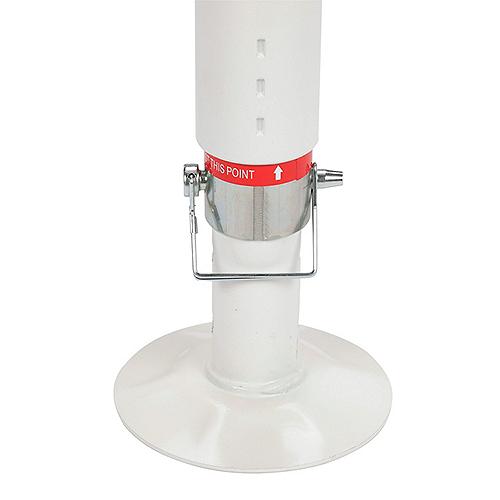 Manual crank overrideFastens to A-frame couplers; fasteners includedQuick plug-in 7-way connectorPlastic holder keeps 7-way connector firmly in placeCorrosion-resistant powder-coated finishLED light for easy night time hookupsFootplate minimizes sinking in soft ground Height range: 9" - 31-1/2" from ground to center of mounting