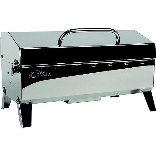 Has a highly polished stainless steel exterior along with stainless steel parts, including burner and grill. The barbecue regulators are designed to accept disposable propane bottles, or can be connected to a large tank with an optional hose. Flavour plates are included to spread heat evenly. Pedestal and other accessories are sold separately.
