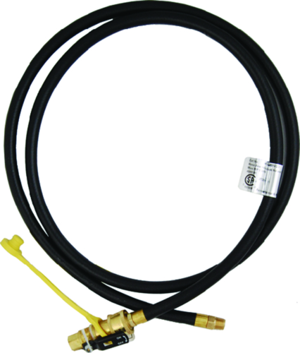 High pressure hose that will allow you to hook up to a Quick-Connect valve on an appliance to an LP gas cylinder. For use with low pressure gas appliances (i.e. 14 water column). Includes shut-off valve. Regulator not included. HP hose 1/4" ID, QD X 1/4" MNPT w/cap.