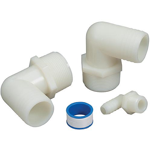 Kit Includes parts required to attach hoses to tanks: 041390 (2) 1/2" NPT; 1/2" Barb; 2 90° 1-1/2"; NPT; x 1-1/2" Barb; (1) 1-1/2" MNPT; 1/2" FNPT reducer, PTFE TapeIncludes parts required to move location of fittings for custom installation