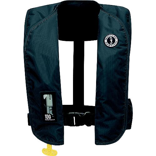 Lightweight and durable PFD. Easy Swap between automatic and manual inflation modes. A zippered hip pocket lets you bring a spare wherever you go. The 1-fold design makes repacking the bladder after deployment simple. The front entry buckle secures the vest while the design turns most wearers face up in the water. The MIT 100 has 28 lbs of buoyancy when deployed. Ideal for inshore and coastal waters. Front entry with buckle for convenient donning and doffing1-fold design is easy to repackInflator inspection window and access flap allow for convenient safety checks
