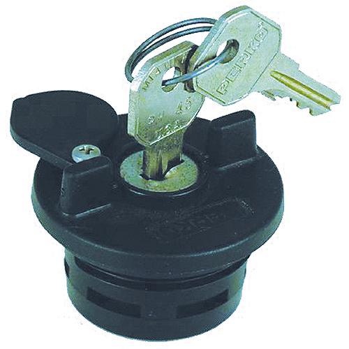 Black plastic cap with built-in five pin tumbler lock. Supplied with two keys. Gasketed to prevent possible moisture from entering the tank. This locking cap will fit all Perko Chromalex gas fills already in use. Skin packed.