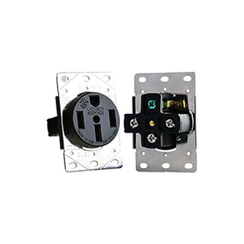 50 Amp, 125/250 Volt (4-wire) NEMA 14-50R Fits all wall-plates with 2.15" diameter center holelack outlet made of thermoplastic body and heat resistant materialOnly accepts 8, 6, and 4 gauge Copper Wires (AWG)Neutral wire is required and can be applicable to 125V or 250V applications and up to 50 AmpsFits in BOTH single and 2-Gang box stylesTerminals marked for easy identification and fast wiring