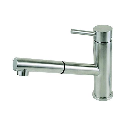Made of durable, low maintenance passivated 304 stainless steel wiht a brushed finish. This lightweight faucet is perfect for installation for galley or bar. Does not swivel. Flexible supply lines with 1/2" NPS-F fittings. Mounting Hole: 1-1/4". Pull out sprayer connected with a 5' hose. Pull out sprayer connected with a 5' hose.