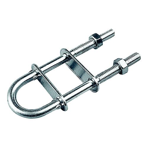 U-bolts are constructed of corrosion resistant machined 304 stainless steel and feature metric threads. The outer mounting plate is held in place by crimped ears forged into the U-Bolt. Comes complete with metric nuts.