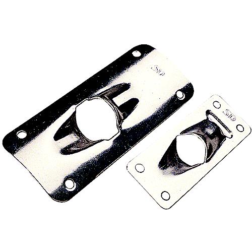 Stamped 316 stainless steel exit plates are used to guide halyards out of a mast or spar or from below deck and allow exterior adjustment of the halyard. Small exit plates have a stamped wear guard and handle line up to 1/2".Flat version for standard masts.