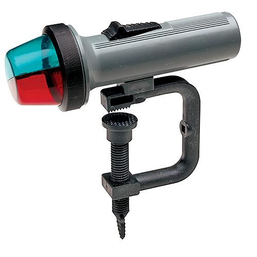 Red/Green portable bow light with adjustable clamp for horizontal surfaces. Requires (2) "D" cell batteries. Designed for speeds up to 7 knots.For nighttime operation of small boats and tenders w/o 12V systems. Not intended to meet U.S.C.G. regulations. Not for use on boats that can exceed seven knots.