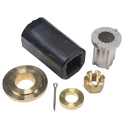 Allows installation of aluminum propellers on popular outboards and stern drives. Includes (l to r): Plastic drive sleeve, cotter pin, aft adapter, forward thrust washer, prop nut and spacer