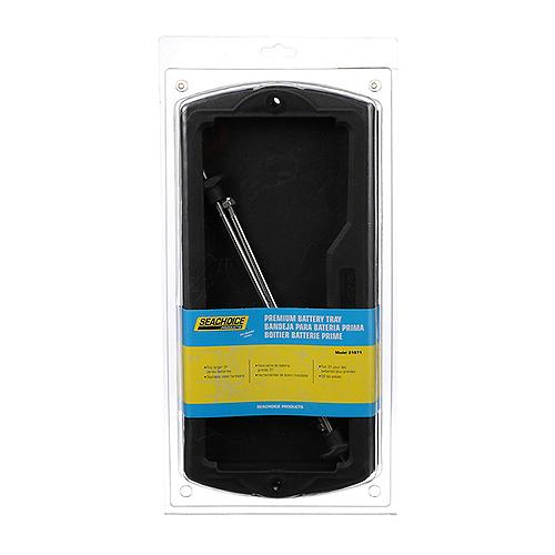 This Seachoice Premium Battery Tray is a strong, reliable holder for a Group 31 battery. This tray has a strong base tray and top perimeter piece, and the top and battery are held securely in place by two included corrosion-resistant Stainless Steel hold-down rods. This Premium Battery Tray's interior dimensions are 12 15/16 inches x 6 ¾ inches x ½ inch. It will not hold Exide® batteries. Seachoice is committed to delivering quality marine accessories and OEM replacement parts to satisfy fishing, boating and watersports enthusiasts worldwide. Seachoice is run for and by boaters, offering a wide-ranging product line while remaining affordable. Strong, sturdy, reliable holder for a Group 31 batteryIncludes strong base tray and top perimeter pieceComes with two corrosion-resistant Stainless Steel hold-down rodsInterior dimensions: 12-15/16 in. x 6-¾ inches x ½ inchWill not hold Exide batteries