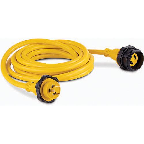 Features marine-grade materials of the highest quality. heavy-duty, marine-grade 10/3 cable and includes standard threaded rings on each end. Sierra Cordsets supply superior performance and perfect for use in harsh marine environments. 30A, 125VAC RatedHeavy-duty, flexible, marine-grade 10/3 STW cable41 strand count cable for optimal balance of flexibility and strengthBoat side power indicator LED assures power to the inletWatertight plug assembly for safety and overall durabilityYellow PVC cord jacket with maximum UV inhibitorsNylon plug body for high resistance of carbon trackingIndustry standard sealing rings for a watertight boat side sealHigh quality, corrosion resistant nickel-plated brass contactsETL Listed