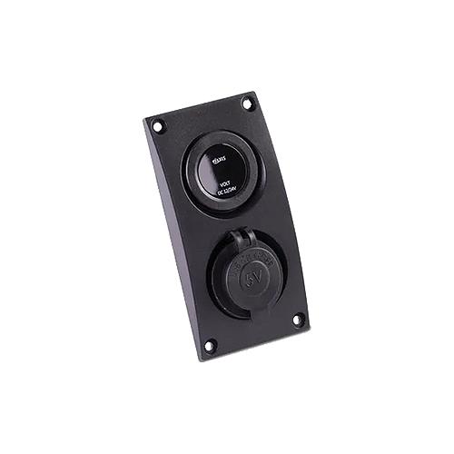 Dimensions: 4.5" x 2.28" Mounting Depth: 2.2"Panel Cut-Out: 4.14" x .2"Modern curved panel design12VDC Auxiliary Power Socket and Voltmeter included with panelCE Certified; IP66 Rated protects against strong water jetsWater-tight mounting gasket includedFits with Contura Rocker switch panels
