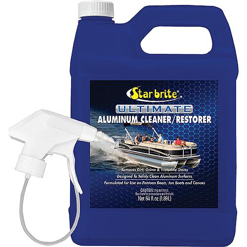 Formulated to clean and restore stained or dull aluminum pontoon boats, jon boats and canoes. The convenient 64 ounce size comes with a sprayer for easy application.