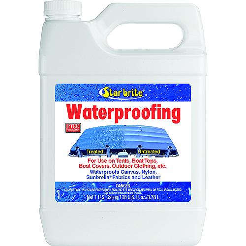 Safe for all fabrics including Sunbrella®. Top rated waterproofing. PTEF® based formula. For boat covers, bimini tops, sail covers, clothing and tents. Does not change color or feel of fabric.