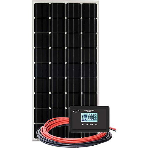 Ideal for smaller units with limited roof space. Panel dimensions: 47.09 x 21.46 x 1.30 in.Includes: 30 amp, Bluetooth® ready, UL rated, PWM digital controller2x 25' solar cables, (1 red, 1 black); cULus approvedMounting hardwarecCSAus rated solar modules25-year power output panel warranty25-year power output panel warranty