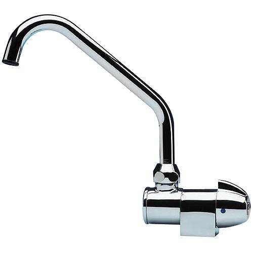 This chrome plated brass faucet is ideal for a sink with limited space and provides total flow control with only 90 degree control movement. Spout swivels and folds down and can be used in vertical or horizontal installations. 1/2 BSP male threaded hose connection.