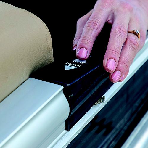 Upgrade your pontoon boat's bimini shade with the SureShade® Power Bimini. This innovative shade solution takes the hassle out of manually setting up and adjusting your pontoon boat's top. With the flip of a switch, you can deploy it effortlessly. Rechargeable Battery Powered Bimini is powered by one 20V (2.0Ah) rechargeable Lithium-Ion battery that provides 30 open and close cycles on a single two-hour charge and stays charged for up to 40 days while not in use. The kit comes with a battery charger and two 20V batteries, keep one on the charge and swap out if needed. No need to run wires through the frame as the receiver is installed directly onto the boat deck next to the helm rail. It can be controlled with the touch switch installed on the helm rail or from anywhere on the boat with the SureShade Connect app. Adjust bimini top with the flip of switchMarine-grade, fade-resistant canvasTelescopic frame fits 92-102" wide boats and mounts to any pontoon rail system10' long canvas provides 30% more coverage than standard bimini topsIncludes locking, zippered pockets for easy canvas storageAllows for speeds up to 25mphCompatible with the Speed Top and Bimini Extension1 year waranty