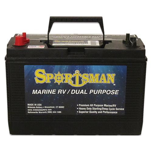 Sportsman Dual Purpose batteries guarantee high quality construction and reliable power for heavy-duty marine use. Made in the U.S.A., 100% maintenance-free, and designed for both starting and deep cycle applications; these batteries are ideal for starting applications with heavy accessory loads. Wet Acid.