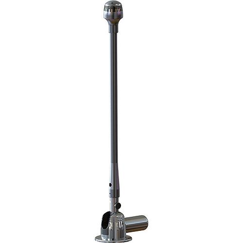 With the simple push of a button, boaters can safely adjust the position of their Masthead Anchor Light from the comfort of the helm. Ideal for powered vessels 39' and under (12-meters and under), the GS-950 is certified for USCG-required 3 nautical miles. The GS-950 is a fully electric unit with hidden wires inside the hardtop. This mount easily installs to the surface of the hardtop and fits all top thicknesses. Machined / Anodized aluminum bodyCertified for USCG-required 3-nmIncludes tube, light and 6" lead for 12-volt DC power supply for lightThreaded shaft for consistent lift and descentDelrin bearings for smooth operationRemovable pin for manual adjustmentMounts to all hardtopsFour 3-watt LED Cree chips6-Watt Stern Light and 12-watt Anchor