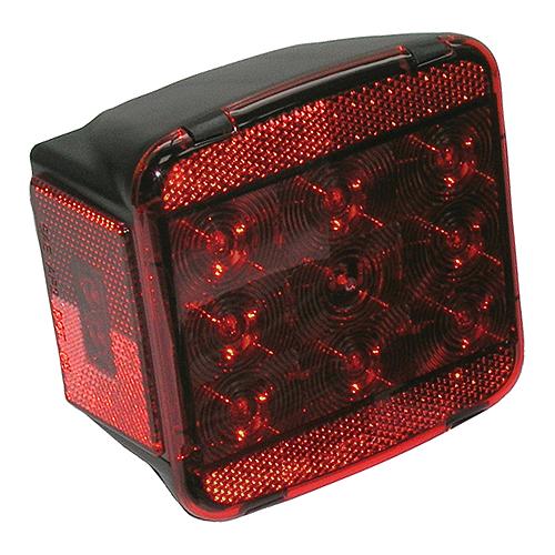 Combination LED stop, turn and tail light. Exceeds all DOT rear lighting and reflex requirements for trailers less than 80" wide. It has solid state construction, no bulbs to break or burn out. 100,000 hour-rated life. The lights are fully sealed and submersible. Includes an integral, dedicated side marker diode. 4-3/4" overall height x 4-7/8" W x 3" D. With-out license light version has 11-diodes; with license light version has 15-diodes.