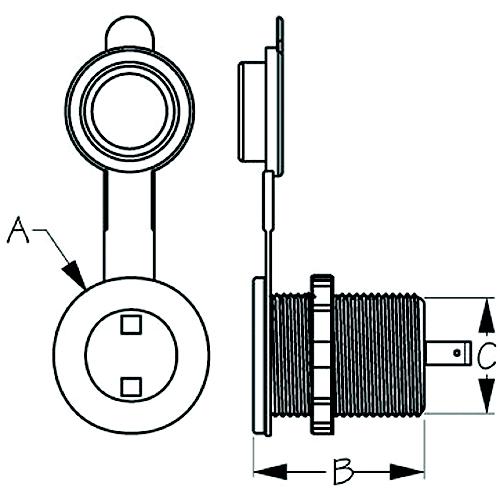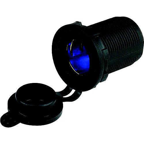LED Power Socket adds power easily almost anywhere. Installation is as easy as drilling a 1-1/8" hole, inserting the socket body, tightening the locking nut, and connecting the wires. 2 blue LEDs light up the interior. Constructed of injection molded nylon and ABS with stamped brass contacts. Input 12-24VDC. 16A. IP65 rating.