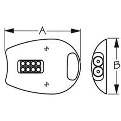 Constructed of corrosion resistant stamped 304 stainless steel. Features two high power Cree LEDs providing 1300 lux light output from the front array, with a focused beam angle of 10° for a concentrated light beam. Eight regular LEDs on the top array have a wide-angle beam of 90° to illuminate a large portion of the dock area. Front lights and top lights can be controlled separately. Their small footprint makes for easy installation. Surface mounted with two #8 RH fasteners (not included). 300 lumens. Low amp draw of 0.28 @ 12VDC. IP68 waterproof rating.