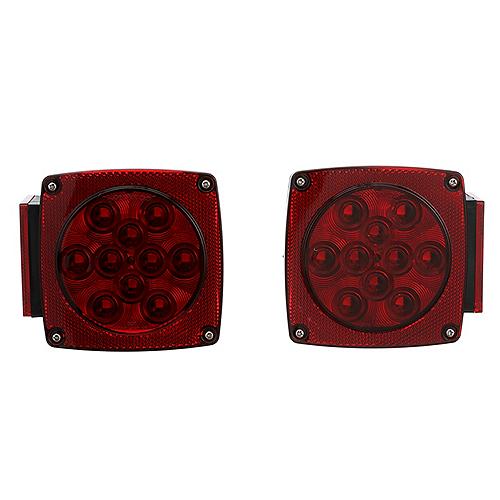 Contains two LED tail lights: (1) 6-function: stop, turn, tail, rear reflex,side marker, side reflex (1) 7-function: LED tail light with license light Meets the requirements of SAE/DOT/FMVSS/CMVSS standards when properly installedTraditional style fits many applicationsWaterproof performanceStud mount lights mount on 2" centersHard wired, with separate ground wireMounting hardware included