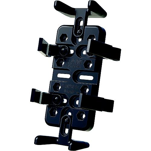 The RAM-HOL-UN4U is designed to hold a large amount of cell phones and electronic devices. The cradle comes with (3 sets) of four flexible rubber coated fingers placed along sides to grip your device. The fingers open by squeezing the ends to open the small finger arms. The bottom of the cradle includes a back plate that adds support to the device being held by the mount. The perfect solution that is the best phone mount, car mount, motorcycle mount and can be used with several other phone accessories including samsung accessories and lg accessories. The spine plate contains the universal AMPs and 1.5" x 2" hole patterns.Included is a set of two nuts and bolts to connect the cradle to any RAM components or mounts that contain the universal AMPs hole pattern.