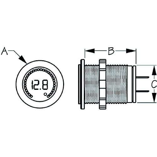 The rainbow dial digital voltmeter gives the user quick visual color-coded voltage information. Red/yellow means the voltage is too low. Green means voltage is normal. The same compact round size as a standard 1-1/8" socket allows this voltmeter to be installed in a wide variety of locations. Rainbow LED display. For use with 12V systems. IP65 rating. Injection molded nylon.