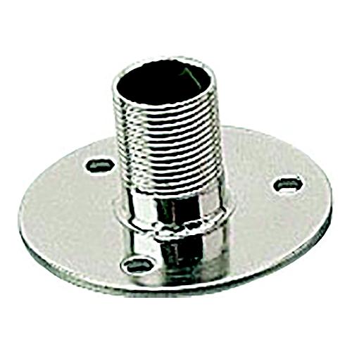 Flange mount fixed antenna bracket. Formed 304 stainless steel construction. Designed to allow wire to feed directly through the base eliminating the need for a separate cable grommet. Ideal for TV, Loran, GPS and VHF antenna's with standard 1"-14 threads. Installs with three ¼" RH fasteners (not included).