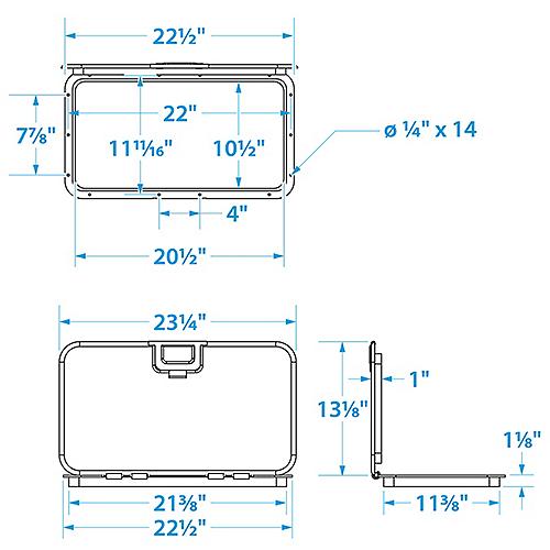 Low-profile design Low-profile designUV-stabilized, acetone-resistant polypropylene constructionHatch lid features interior gasketIntegrated hinge system allows 180° openingFlush handle for easy accessMax. weight capacity: 350 lbs.#8 Fasteners required
