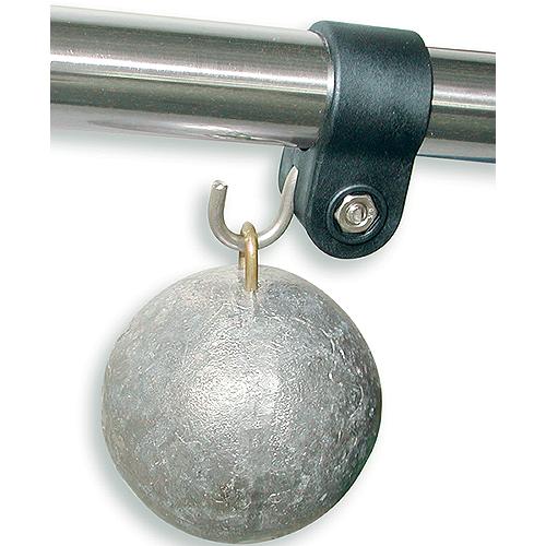 Provides a hook on the downrigger boom for storage and transport of downrigger weights.