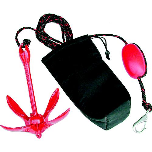 Folding anchor is designed for temporary mooring of small boats, sailboats, personal watercraft, inflatable boats, canoes, and float tubes. The 3.3 lb 4-fluke folding anchor will hold in mud, sand, gravel and rock. Includes nylon storage bag, 25' line w/float and folding anchor.