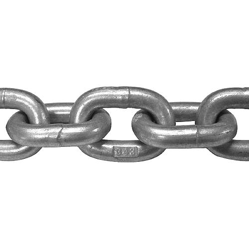 ISO High Test Chain uses high tensile strength carbon steel that provides a greater strength-to-weight ratio than proof coil chain. ISO short pitch link which makes it more flexible and ideally suited as a windlass chain. Each link is proof tested and calibrated. Check manufacturer's specification prior to purchase. Finish: hot dip galvanized.