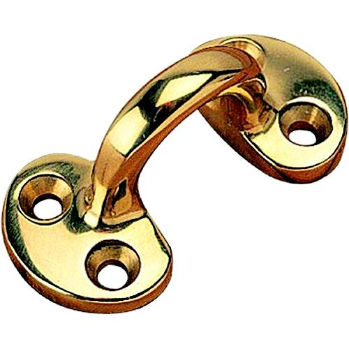 Polished cast brass pad eye can be used for a variety of applications both decorative and functional. Great for block attachment, controlling lead lines, or creating tie down points. Installs with two #8 FH fasteners (not included).