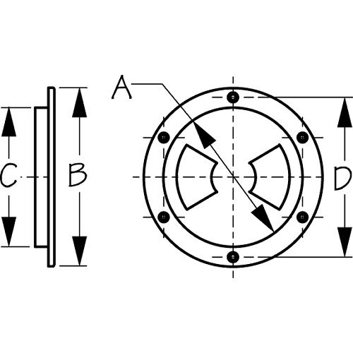 | 354-336165 | Seadog 336165 Smooth Finish Quarter-Turn Deck Plate, Black, A:6-1/2" , B:8-1/8", C:6-1/2", D:7-3/8" |