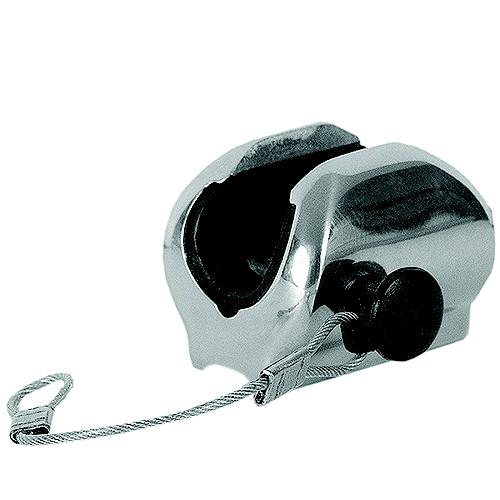 High quality, marine grade Type-316L stainless steel with polished finish for strength and long lasting durability. Delrin insert provides smooth, rattle-free canvas top operation. Can also fit windshield headers. With quick release pull and D-ring pin. Fastener: #8 Flat head screw. 5-Year limited warranty.