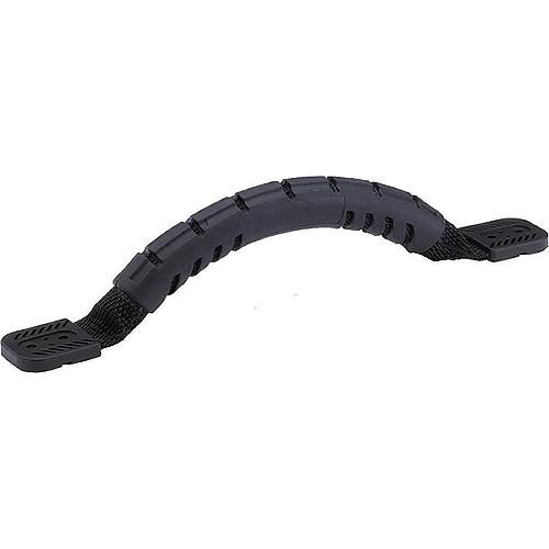 Flexible grab handles for flush, flexible mounting. They can be mounted to a variety of irregular surfaces and angles on swim platforms, cockpits and companionways. Constructed from soft polypropylene webbing over a semi-rigid core. Available with or without an over-molded grip. Because of the soft, pliable webbing in these handles and the absence of any sharp edges, they are safe in areas where occupants might impact them. They meet the ABYC H-41 standard for strength: withstand a load of 400 lbs. in any direction. All materials are non-corrosive, UV stable and mildew-resistant. Four holes for required #12 fasteners.