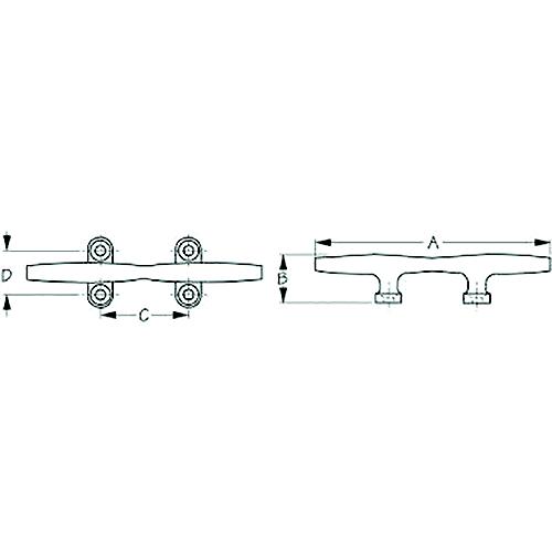| 354-041610 | Sea-Dog 041610 Cleat, Stainless Open Base, A: 10" , B:1-7/8", C:3-5/8", D:1-3/4", 5/16" FH |