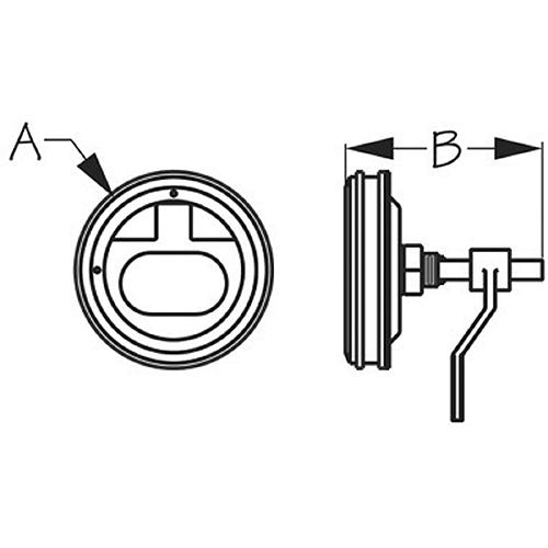 Investment cast 316 stainless steel construction for corrosion resistance and durability. This Large Round Hatch Handle Latch features a T-handle to engage the offset locking arm. Handle is recessed for a flush, clean installation. Requires a 3" size cut-out hole and installs with a back mounted stainless nut.