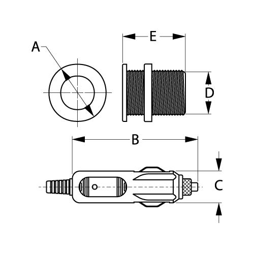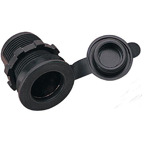 Flush mount socket is constructed of injection molded nylon & ABS. Installation is as easy as drilling a 1-1/8" hole, inserting the socket body, tightening the locking nut, and connecting the wires. Maximum: 12VDC, 16A.