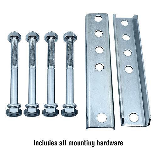 Swings from vertical position to horizontal during transportation Swings from vertical position to horizontal during transportationSpring loaded latch locks and releases the jack from one position to the otherBolt-on designIncludes all mounting hardwareFits up to 3" x 5" trailer frame1,500 Lbs. max load24" Extended height; 12" of travel